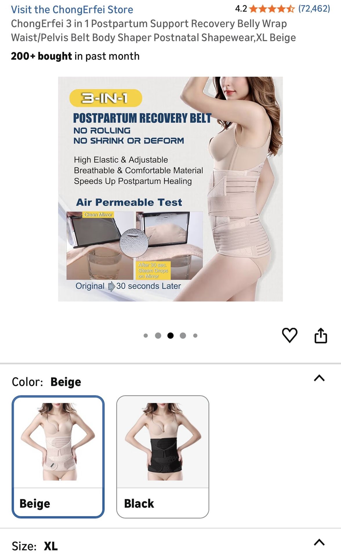 ChongErfei 3 in 1 Postpartum Support Recovery Belly Wrap Waist/Pelvis Belt Body Shaper Postnatal Shapewear, XL Beige Asking $20 3-IN-1 POSTPARTUM RECOVERY BELT NO ROLLING NO SHRINK OR DEFORM High Elastic & Adjustable Breathable & Comfortable Material Speeds Up Postpartum Healing Air Permeable Test
