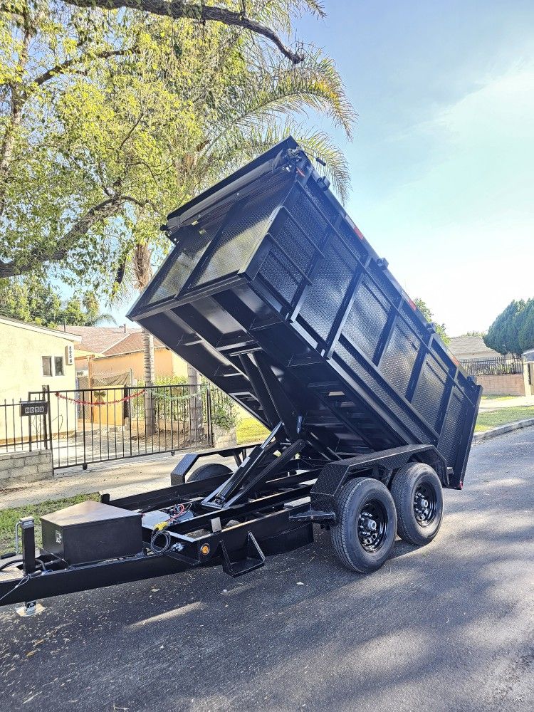 HEAVY DUTY 8 LUGS TIRES 14x8x4-12x8x4 SCISSORS HOIST SYSTEM CAPACITY 7 TON,SET RAMPS,ROLLING TARP,SPARE TIRE, 4 WHEELS ELECTRIC BRAKES, LED LIGHTS,ADJ