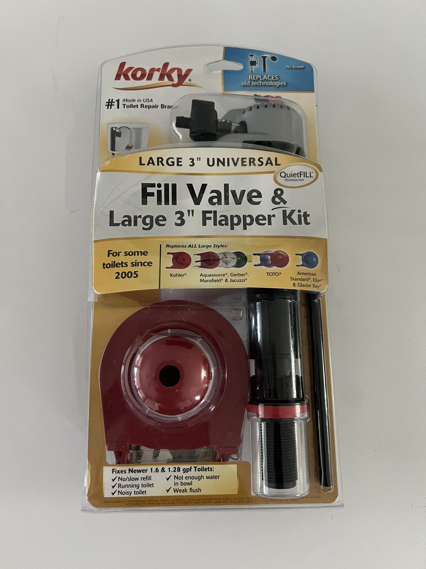 Korky Fill Valve & Large 3" Flapper Kit With QuietFILL Technology Item #830MP