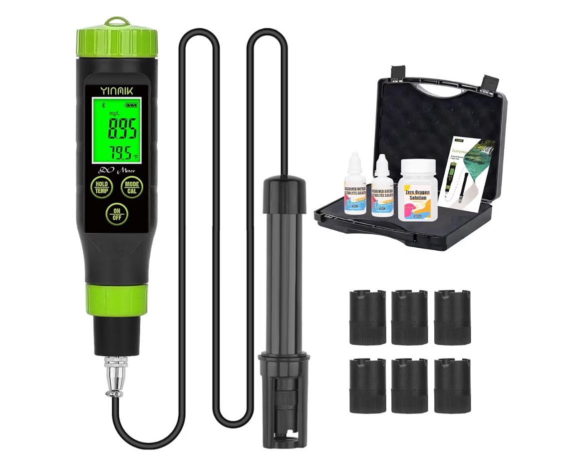 MSRP $67.99 Accurate Dissolved Oxygen Meter for Ponds: YINMIK dissolved oxygen meter offers two modes for measuring dissolved oxygen levels in water: mg/L mode (1 mg/L = 1 ppm) and % mode. It is a precise DO meter with a resolution of 0.01 mg/L and 1%, and a range of 0-30 mg/L and 0-300%. YINMIK DO meter accurately measures dissolved oxygen levels in water, making it ideal for koi ponds, aquariums, fish tanks, and aquaculture, helping you provide the appropriate dissolved oxygen levels for aquatic pets. Portable Dissolved Oxygen Test Kit for Environmental Monitoring: YINMIK Dissolved Oxygen Reader features a portable packaging design (durable plastic shell, shock-resistant foam insert, and handle-style carrying design) for easy carrying and convenient testing of dissolved oxygen levels in outdoor water. Whether testing DO levels in urban water supply systems or monitoring DO content in rivers and lakes, YINMIK Portable DO Monitor is the ideal choice for dissolved oxygen testing. Smart Dissolved Oxygen Meter: Connecting to the YINMIK APP via Bluetooth, the Bluetooth Dissolved Oxygen Meter can store 1000 dissolved oxygen readings and display changes in DO content via Excel. With ATC function, and salinity and altitude compensation settings via the APP, YINMIK dissolved oxygen meter will get accurate DO (dissolved oxygen) readings. This dissolved oxygen meter can provide you with precise dissolved oxygen and temperature levels for reef tank and saltwater aquarium. Easy Calibration - Zero Oxygen Water: More convenient calibration mode requiring only 100% point calibration! ① For solution >2 mg/L, only 100% point calibration is needed.Testing the dissolved oxygen level of beer wort, 100% point calibration will provide accurate DO value; ② For solution <2 mg/L, with zero oxygen solution, DO meter obtain more accurate DO value after 0 point calibration, YINMIK DO meter is the best dissolved oxygen analyzer for Wastewater Treatment, Laboratories, Education.