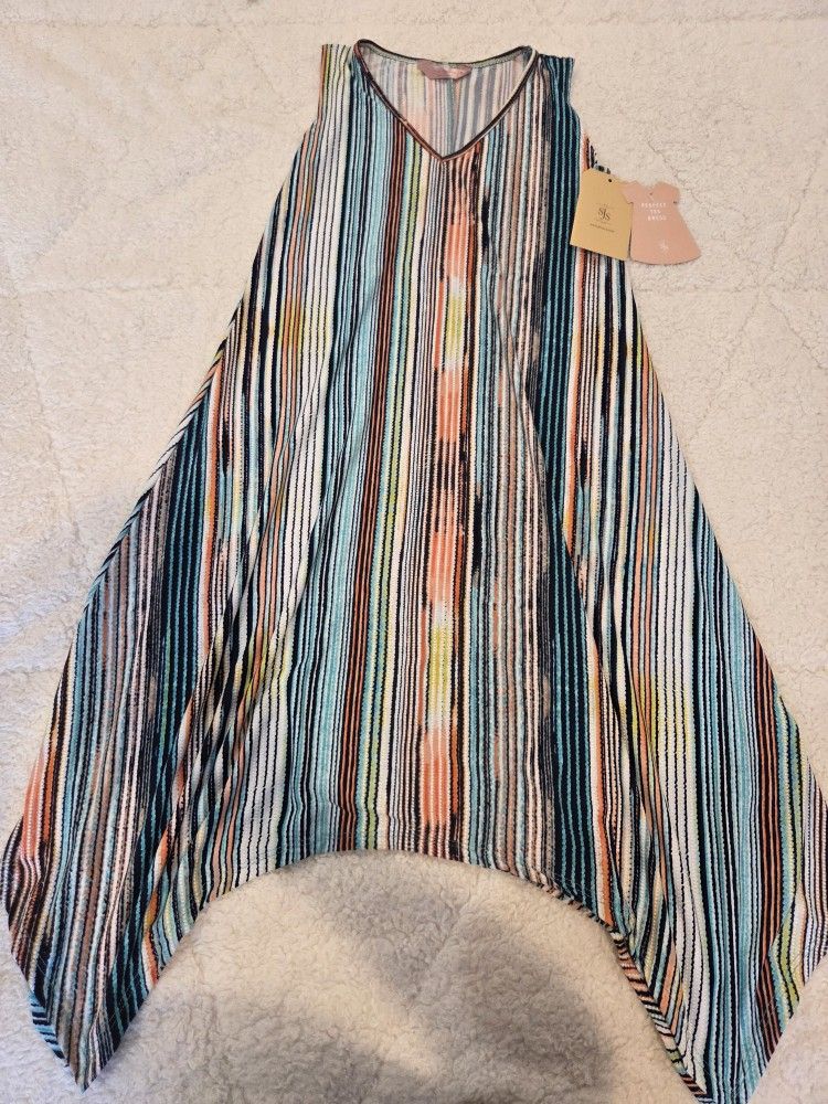 Brand new SJS “Perfect Tee Dress,” never worn, with original tags attached. Sleeveless knee-length dress featuring a multicolor vertical stripe pattern and a relaxed, flowy fit. Soft, lightweight fabric with a flattering V-neckline. Comfortable and easy to wear. Perfect for everyday wear, summer outings, travel, or casual occasions. Can be dressed up or down. I received this as a gift, but it doesn’t fit me. Brand: SJS Style: Perfect Tee Dress Size: Small Length: Knee length Condition: New with tags Clean, smoke-free home. Message me with any questions.