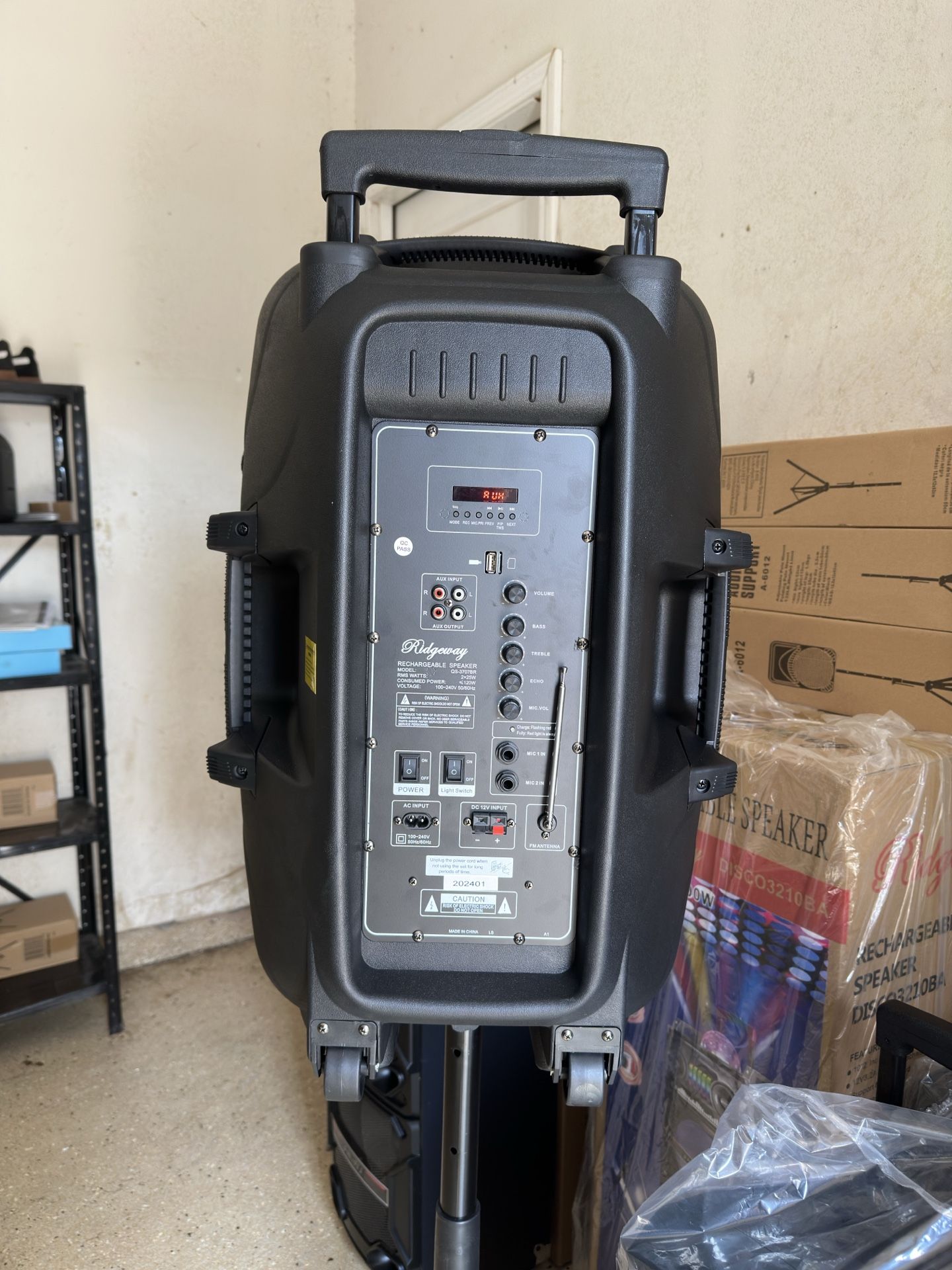 Rechargeable Music player - 15” Woofer MICROPHONE & CHARGER INCLUDED ! Bluetooth - Fm Radio - Rechargeable USB PORT - SD MEMORY SLOT - Portable Compatible with any Bluetooth device ! VERY LOUD ! GREAT FOR OUTDOORS AND PARTIES
