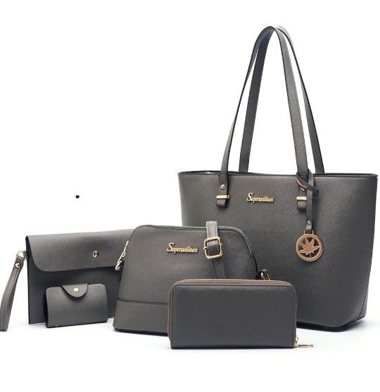 New Dark Grey Handbag for Women Wallet Tote Bag Shoulder Bags Top Handle Satchel 5pcs Purse Set