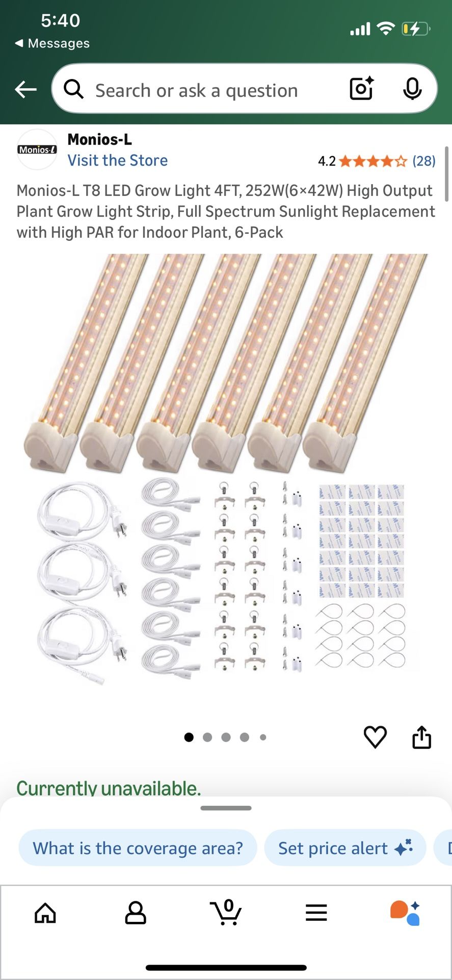 Full spectrum LED grow lights for plants. Natural light color. Used and selling all together. There are 2 cords for wall plugin, and 11 cords to daisy chain the rest. Paid $80 for each 6 pack. They’re dusty but they all work Good for hydroponics or houseplants