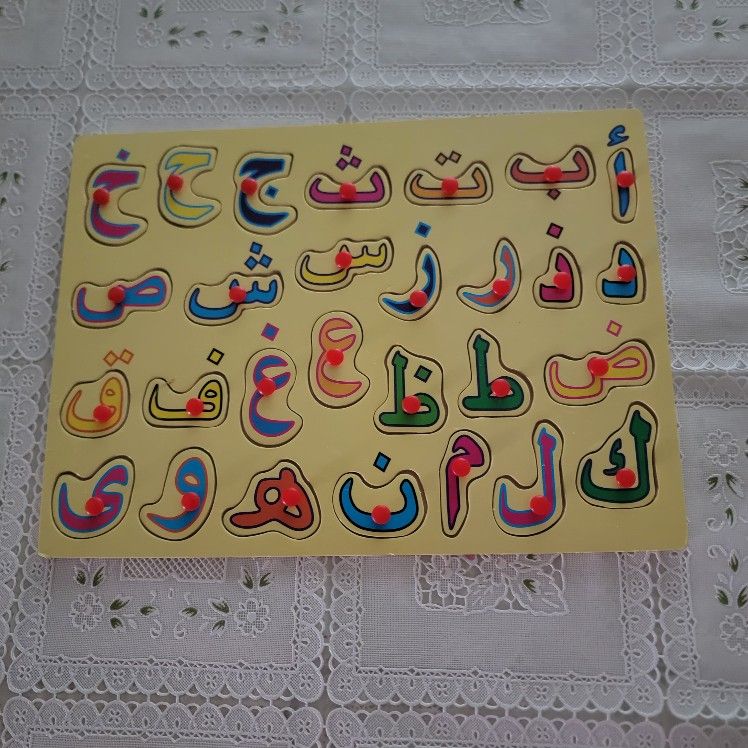 Arabic alphabet puzzle like game. For kids age 3 and up. Used. Price - $5 Local pickup.
