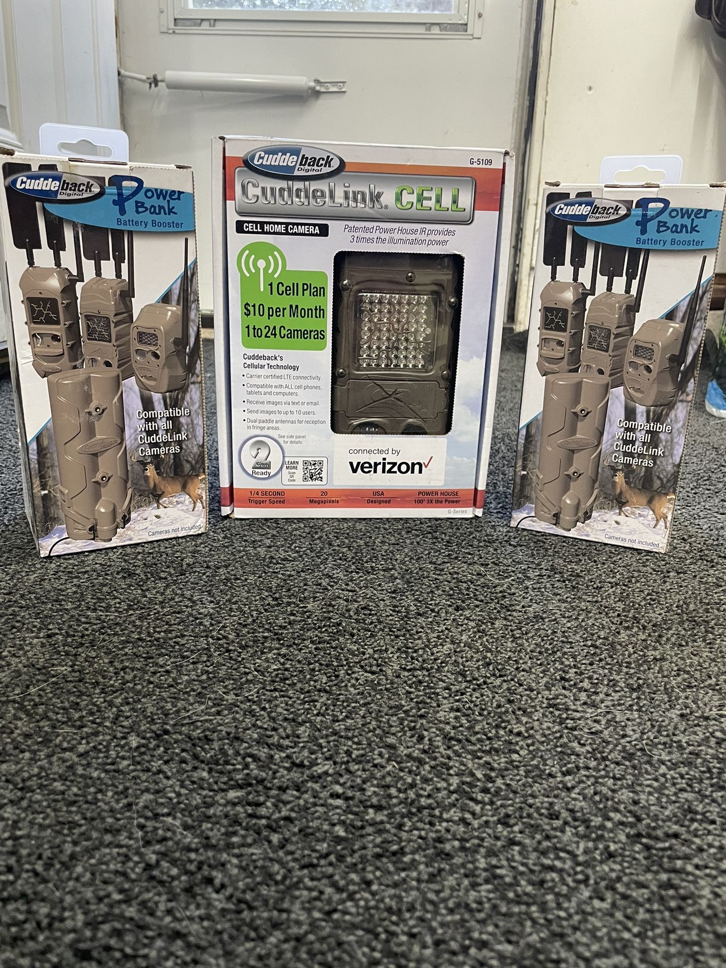 NIB Cuddeback cuddelink cell trail camera. This model is the G-model used with Verizon. Also Included are (2) NIB power banks.