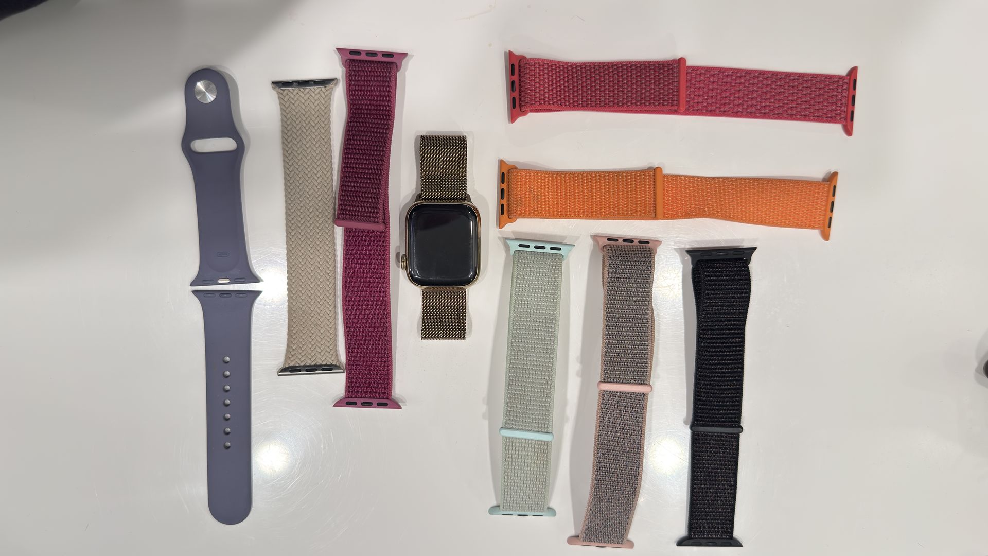 Percent working condition, unlocked. Only noticeable sign of wear is discoloration on knob. Includes charger and 9 Apple Watch bands.