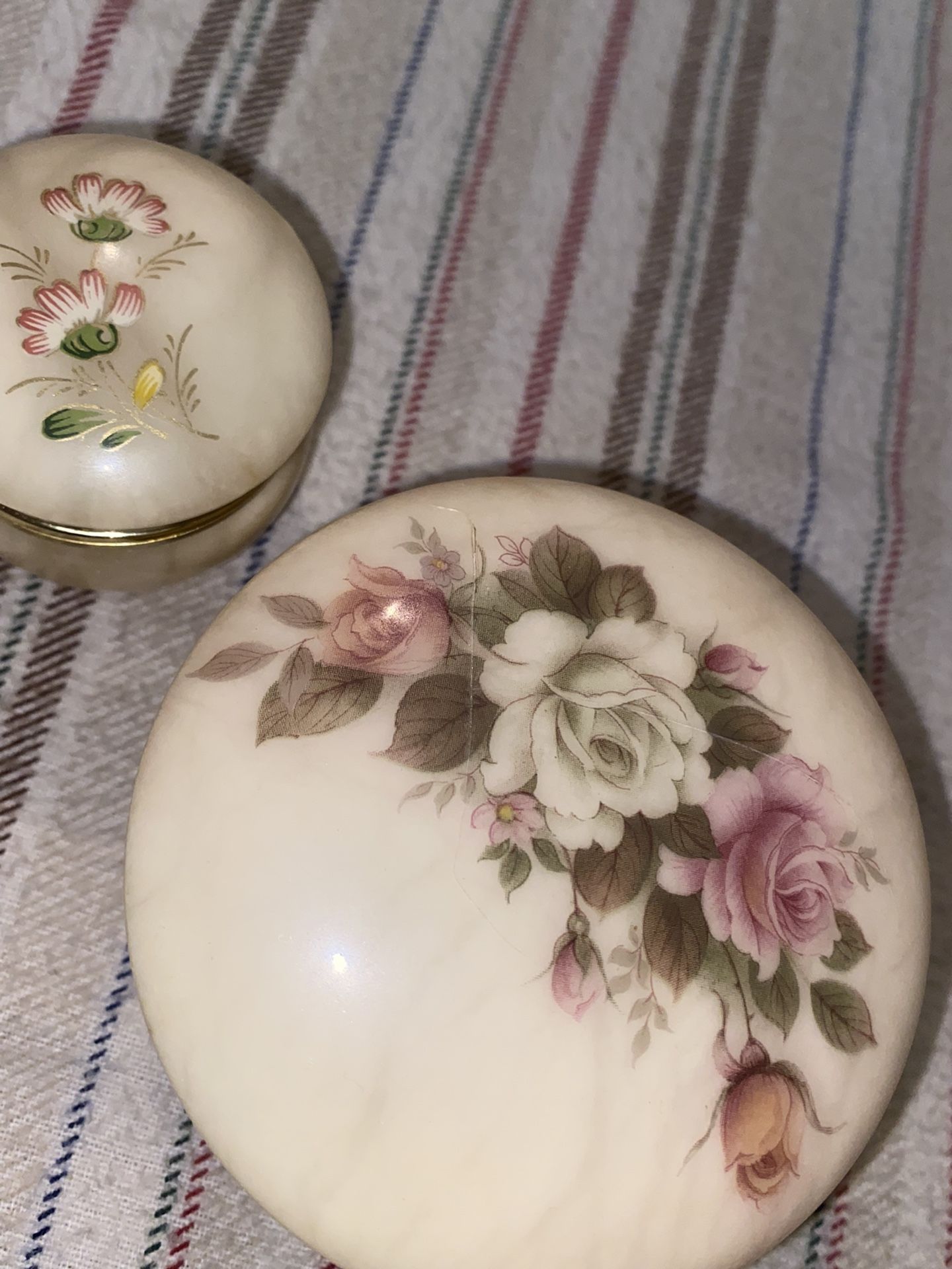 Genuine Alabaster Hand Carved Hinged Round Trinket Jewelry Box Made in Italy