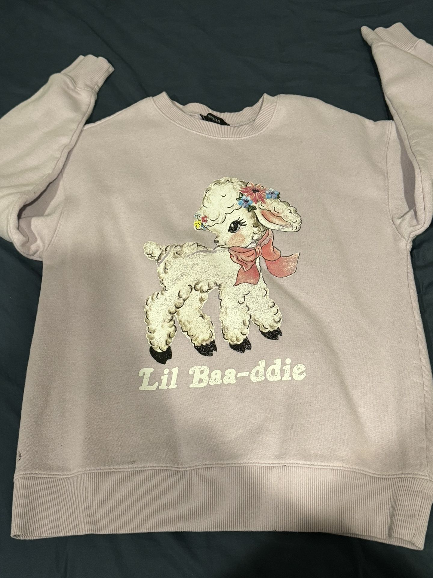 Item in good condition There are some small staining that can be cleaned with a few wash I bought this and only worn a few times Size S with size tag Now it’s too small for me It’s a cute sweatshirt with a sheep