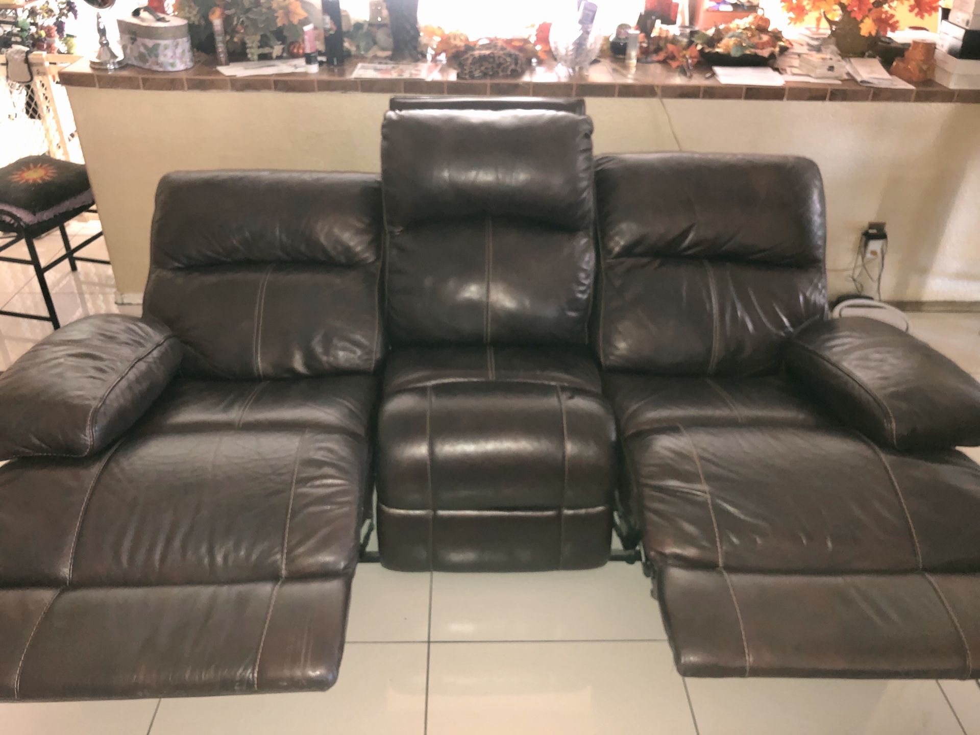 Brown leather recliner couch