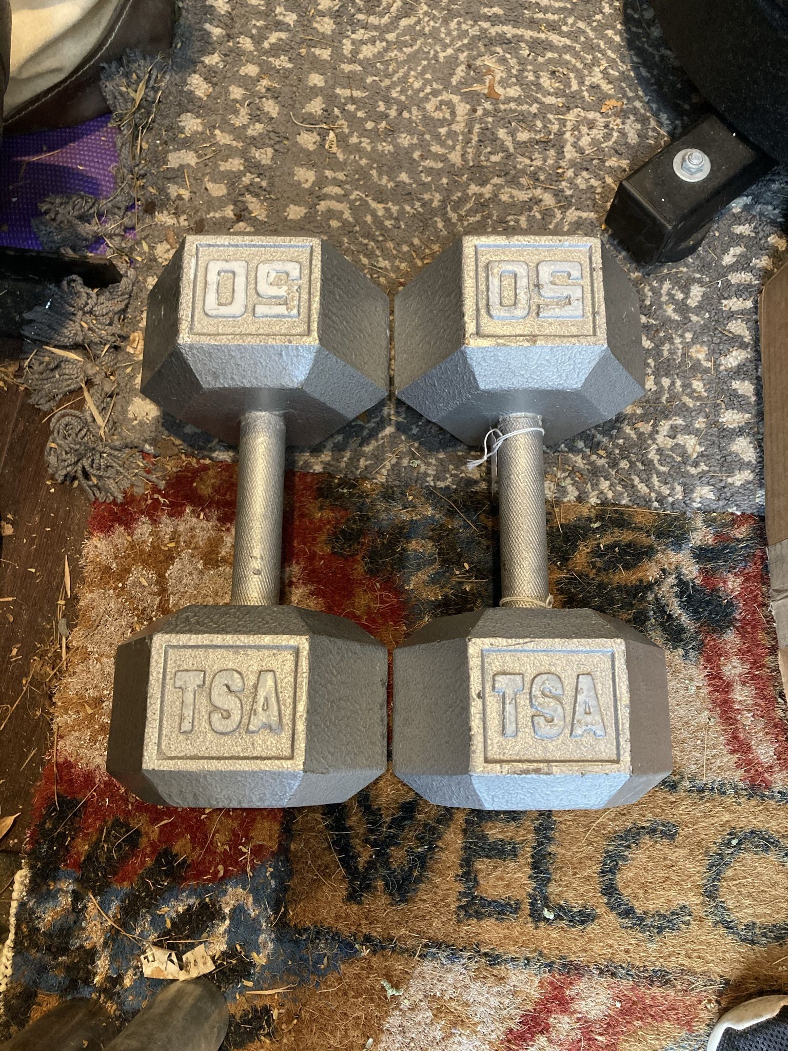 Pair of 50 lb steel hex dumbbells. 100 lbs total weight. Good condition! Make me an offer! These are commercial quality rubber wrapped steel dumbbells. Better than standard steel because they won’t damage your floors or equipment. Tags: Bumper Plates, Precor Icarian, Star Trac, Cybex, Paramount, Magnum, Life Fitness, Hammer Strength, Stair Master, Techno Gym. Treadmill, Elliptical, Spinning Bike, Spin Bikes, Recumbent Bikes, Up Right Bikes, Stepmills, Steeper, Spinners. Free weights, Dumbbells, Barbells, Racks, Plates, Plate Trees, Bench, Olympic Bench, Decline Bench, Multi Station, Jungle Gym, Cable Cross Over, Accessories. Gym, Commercial Gym Equipment, Fitness Equipment, Used Gym Equipment, Refurbish Fitness Equipment, Equipo de Gimnasio Usado, Cybex, Life Fitness, Star Trac, Precor, Hoist, True, Nautilus, Hammer Strength, Atlantis, Matrix. Diesel, Paramount, Stair Master, Magnum, Quantum, Body Master, Icarian, Elite Gym Equipment International inc. Circuit, Complete Gym, All Commercial Machines, Fitness & Gym Equipment Outlet Warehouse. Treadmills, Ellipticals, Cross Trainer, Stepmills, Recumbent Bike, Upright Bike, Spin Bikes, Steppers, Spinners, Multi Station Gym, Jungle Gym, Fitness Equipment, Commercial Gym Equipment, Exercise Equipment, Cardio Machines, Cross Fit, Exercise, Cardio, Plate Loaded Machines, Leg Press, Smith Machine, Cable Crossover, Weights, Dumbbells, Rubber Dumbbells, Barbells, Rubber Weights, Plates, Rubber Mats, Racks, Commercial Benches and Accessories, fitness equipment, nuste Less Tags: Gym, fitness, dumbbells, kettlebells, barbell, exercise, Titan, rogue, weight, weights, dumbbell, kettlebell, bumper, rubber, bumpers, CrossFit, pesa, pesas, Bench, Bench press, squat, olympic, rep fitness, Sorinex, Eleiko, elite fts, Titan fitness, rogue fitness, bumper plates, Ohio, plates, iron, steel home gym, powerblock, bowflex, ironmaster, iron master, adjustable, cardio, treadmill, elliptical, concept 2, FID