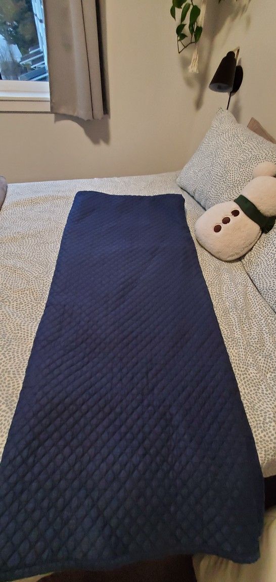 Dark blue, good condition. Quite heavy. Freshly washed and ready to go from a pet friendly home