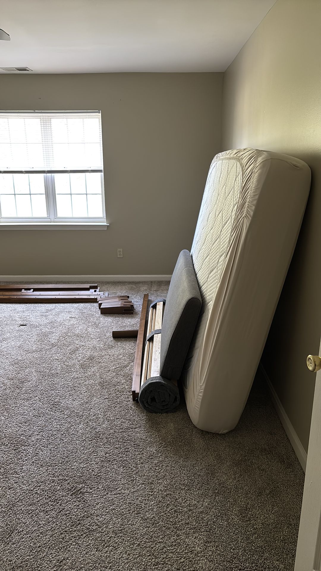 Queen mattress and thuma brand bed frame. That Locks together, no tools needed solid wood bedframe with cloth headboard. Best offer Delivery available for extra fee
