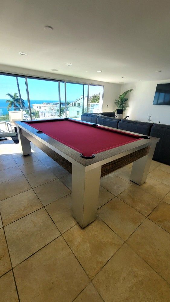 Hello I put on sale a Pool Table, Vegas contemporary brand ๐๐๐,this table is made in USA ๐บ๐ธ , Solid wood, Italian Slate, it is a table with a unique desing, great condition, the table is 8ft standar SIZE. The table includes new proffesional cloth, you can chosse over 30 different colors, 2 ques, 1 bridge, chalk,triangles, FREE DELIVERY & INSTALATION on first floor, second floor open at an extra cost. You can came to see the table in our storage place. We are prefessionals, we have more than 25 years of experience, any cuestions text me any time. Hablamos espaรฑol