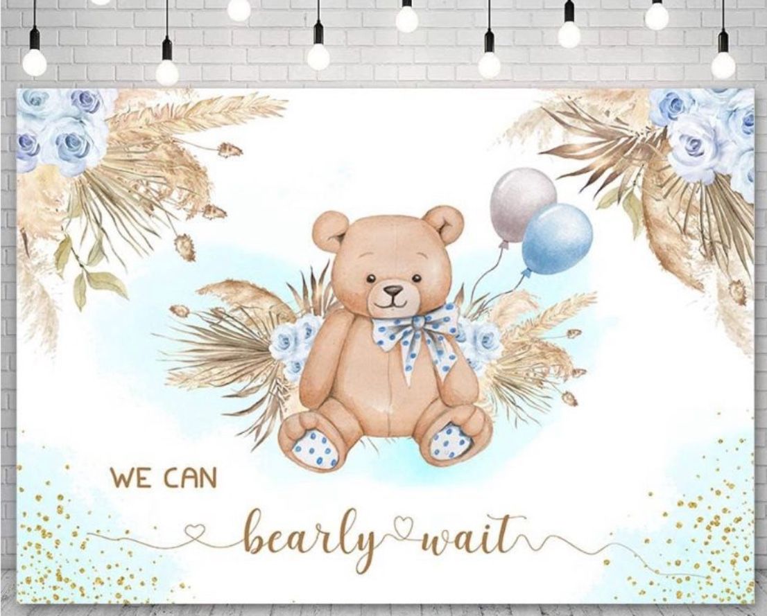 Sendy 8x6ft Boho Bear Baby Shower Backdrop For Girl We Can Bearly Wait Baby Shower Photography Background Blue