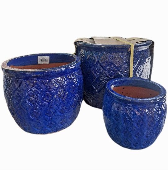 Ceramic Planters Pots in Blue color Sm,Md,Lg 3-pcs