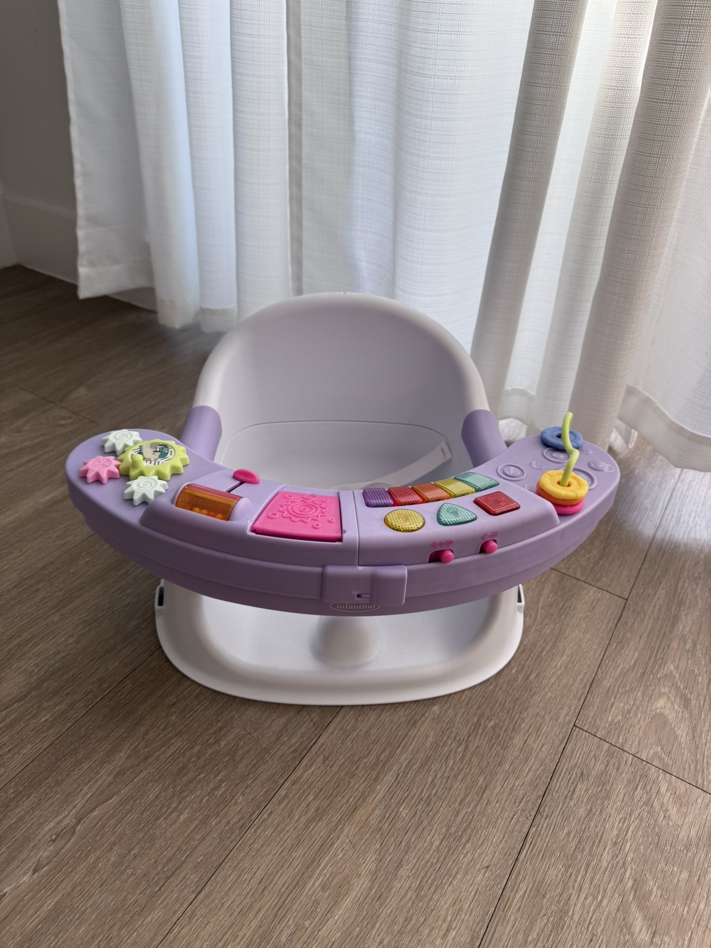 Infantino Music & Lights 3-in-1 Discovery Seat & Booster, Toddler Booster seat. Baby Activity Center & Snack Tray, Lavender. Perfecto para Bebe y niños pequeños. Valorado en UD$60 dólares