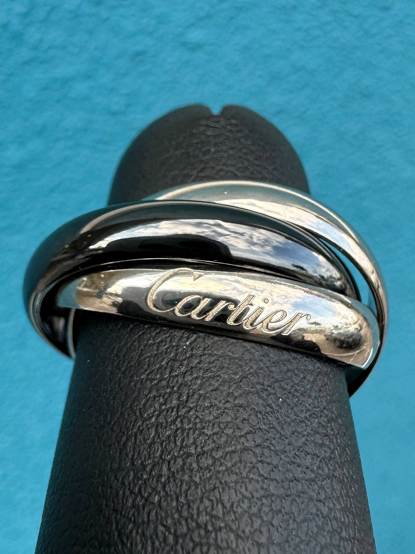Cartier TRINITY RING 18k white gold CERAMIC CLASSIC MODEL sz 52 & box