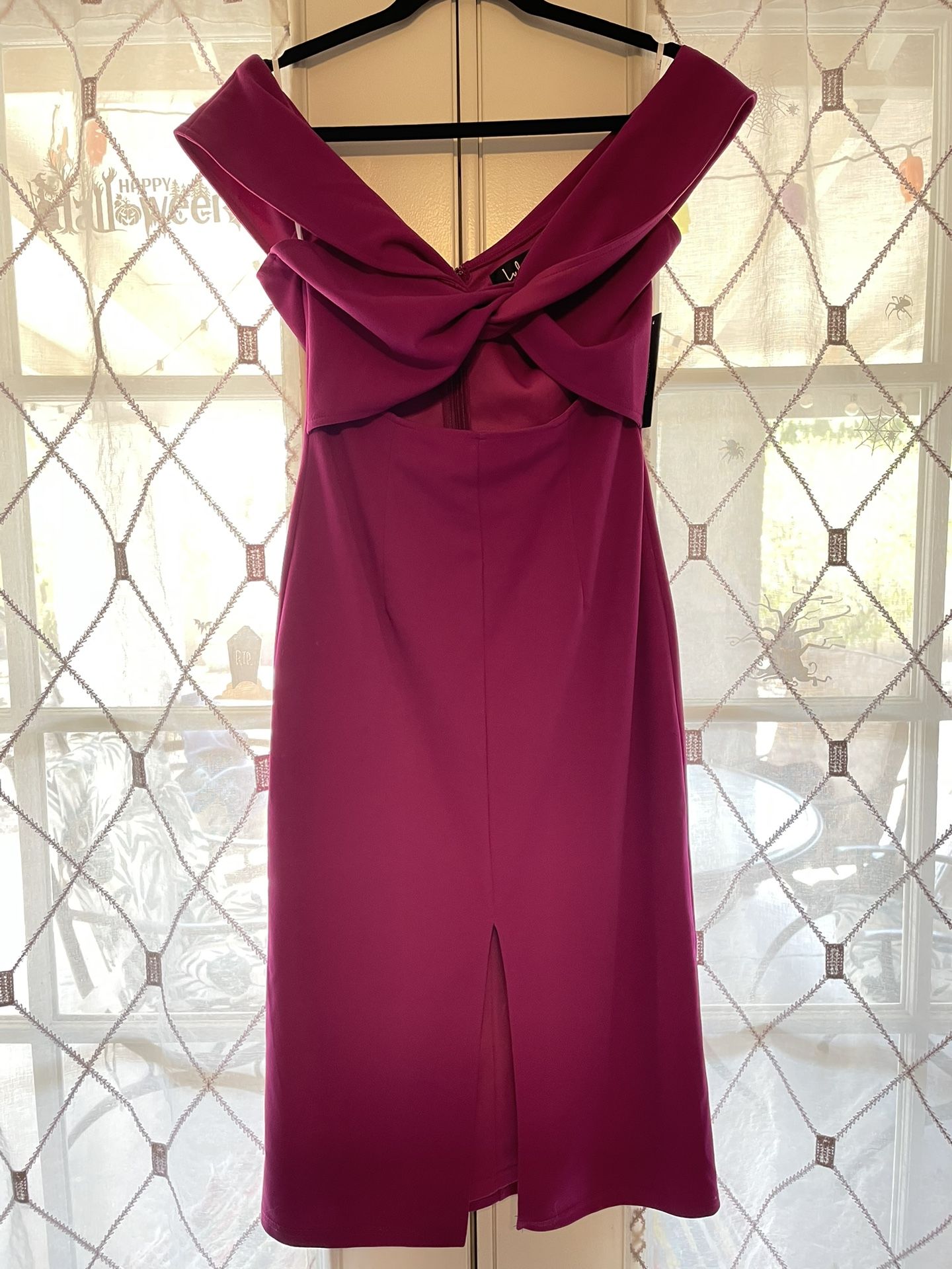 The Lulus medium dress is a stylish choice for a party or cocktail event. With an off-the-shoulder neckline and short sleeves, this knee-length dress exudes elegance. The solid purple color adds a touch of sophistication, while the cut-out detail adds a trendy twist. The pencil dress style and stretch material make it both fashionable and comfortable for any occasion. Perfect for a woman looking to make a statement with her outfit.