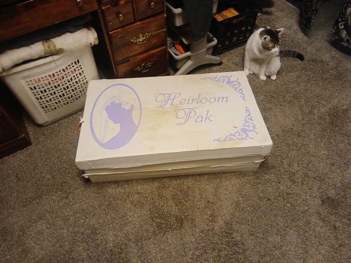 It is still in the box its a size zero and it has two vails It has a long one and a short one and the head band thing for them to attach to