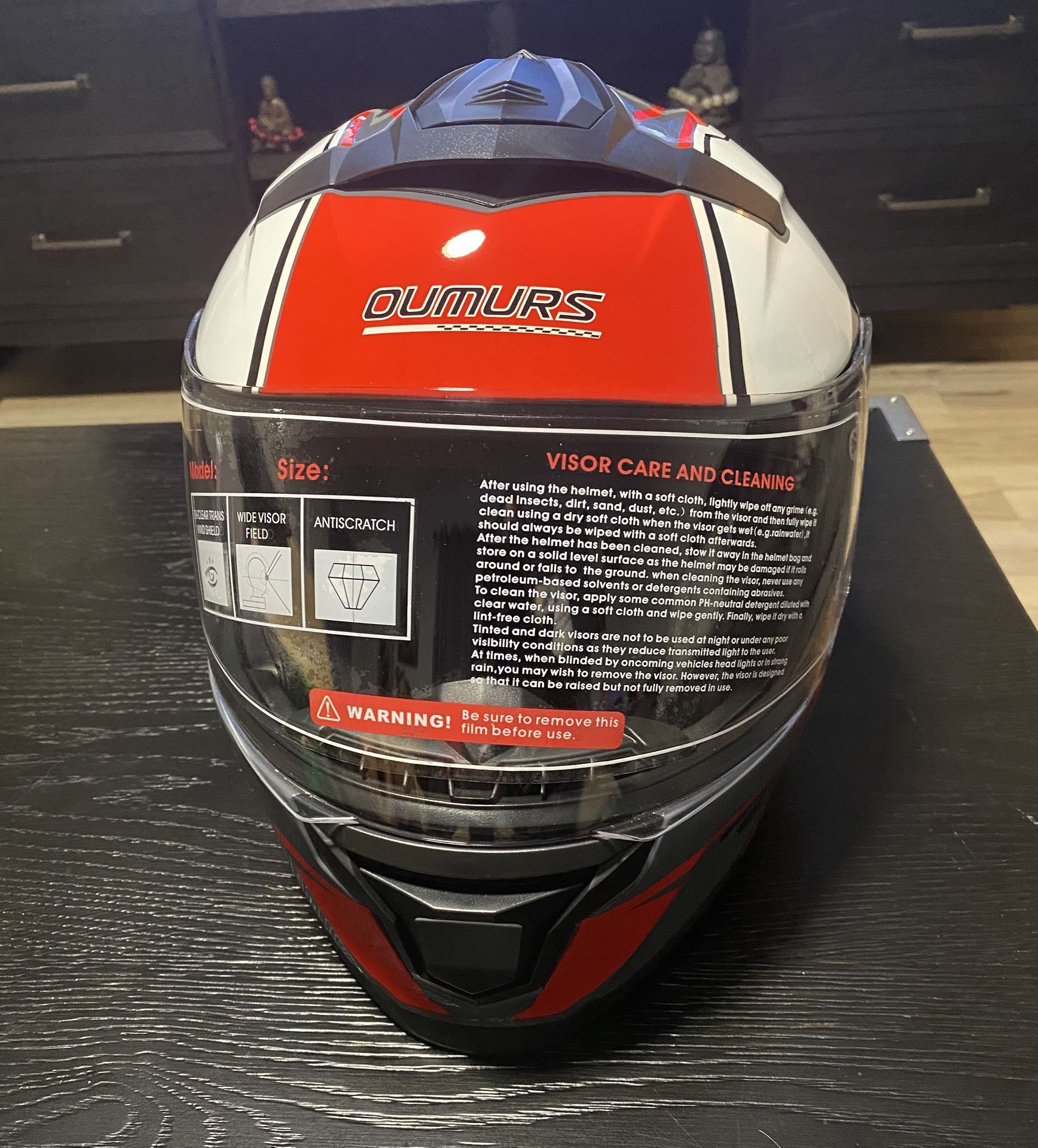 OUMURS Modular Motorcycle Helmets Full Face Flip up Street Bike Motorcycle Helmet for Unisex Adult Rocket Red - XL
