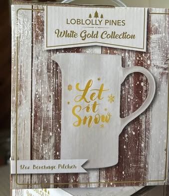 Loblolly Pines Let it Snow 42 oz Cold Beverage Pitcher White Gold Collection NEW