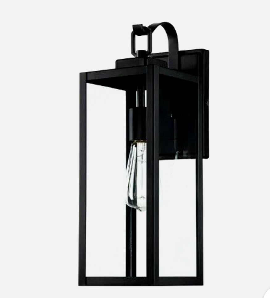 Open Box Sconce TypeLantern. Exterior Lighting Product TypeSconce. Shade MaterialGlass. Glass TypeClear Glass. Fixture Color/FinishMatte Black. Light bulb not included.
