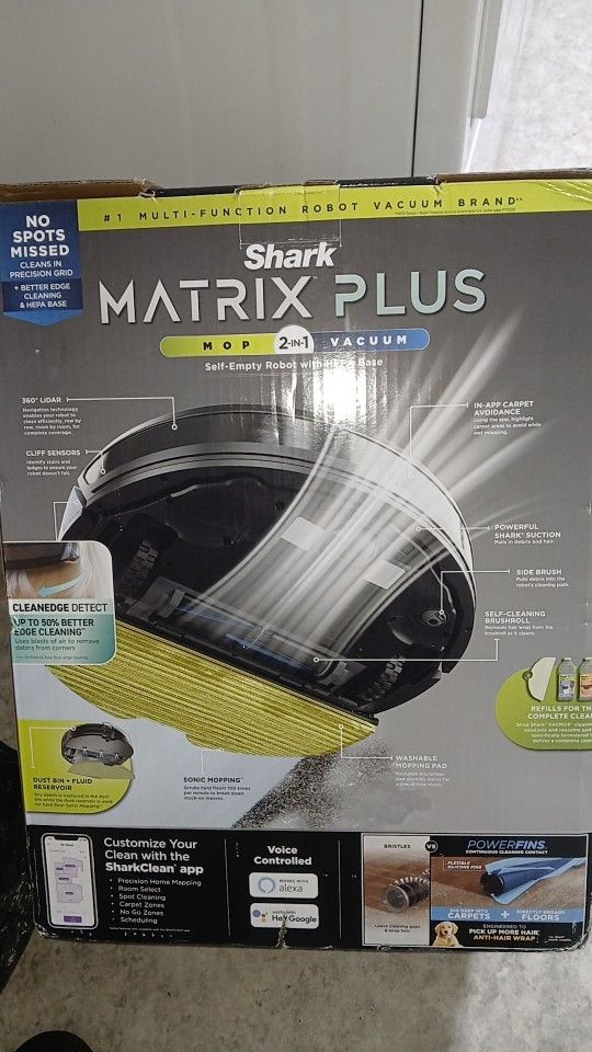 The Shark Matrix™ Plus 2-in-1 Self-Empty XL Robot Vacuum and Mop combines incredible suction power, powerful sonic mopping™, and self-emptying together into one ultimate cleaning machine on carpets and hard floors. No cleaning detail is unmet with this robot's corner and edge cleaning, self-cleaning brushroll for pet hair, and HEPA filtration trapping 99.97% of dust and allergens into the bagless base.