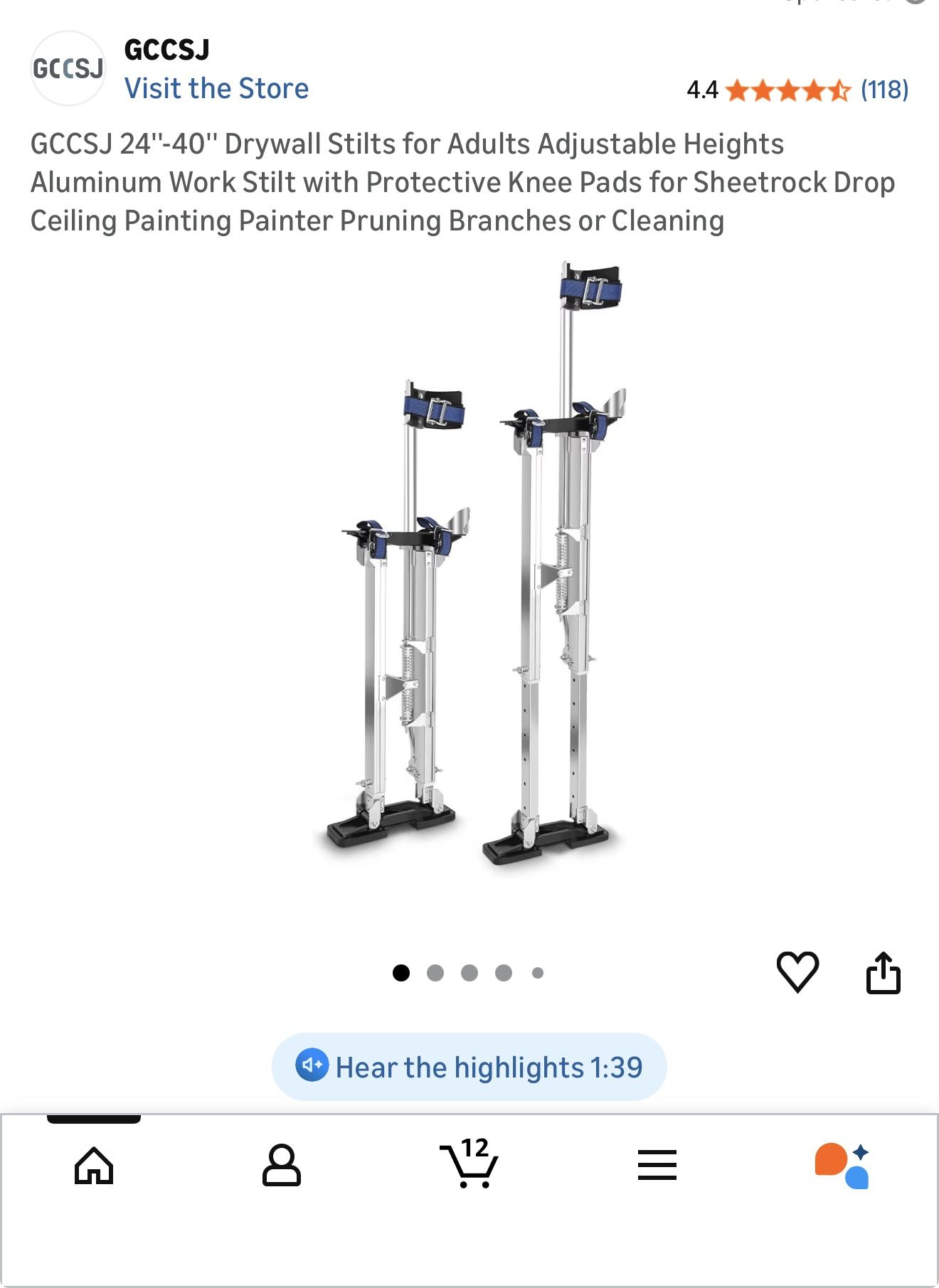 GCCSJ 24''-40'' Drywall Stilts for Adults Adjustable Heights Aluminum Work Stilt with Protective Knee Pads for Sheetrock Drop Ceiling Painting Painter