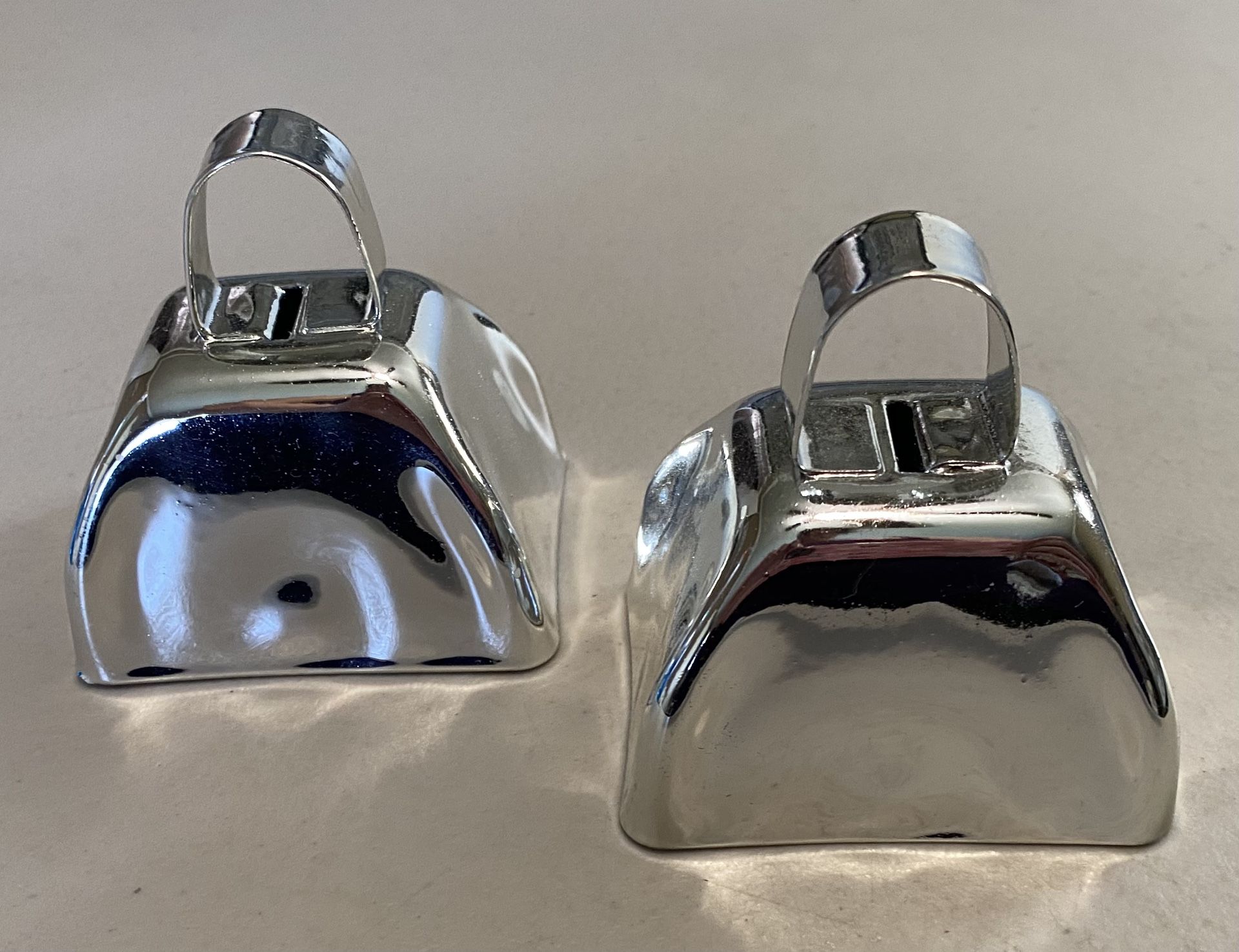 METAL PAIR OF COWBELLS- SILVER 3” L PICKUP IN TURLOCK