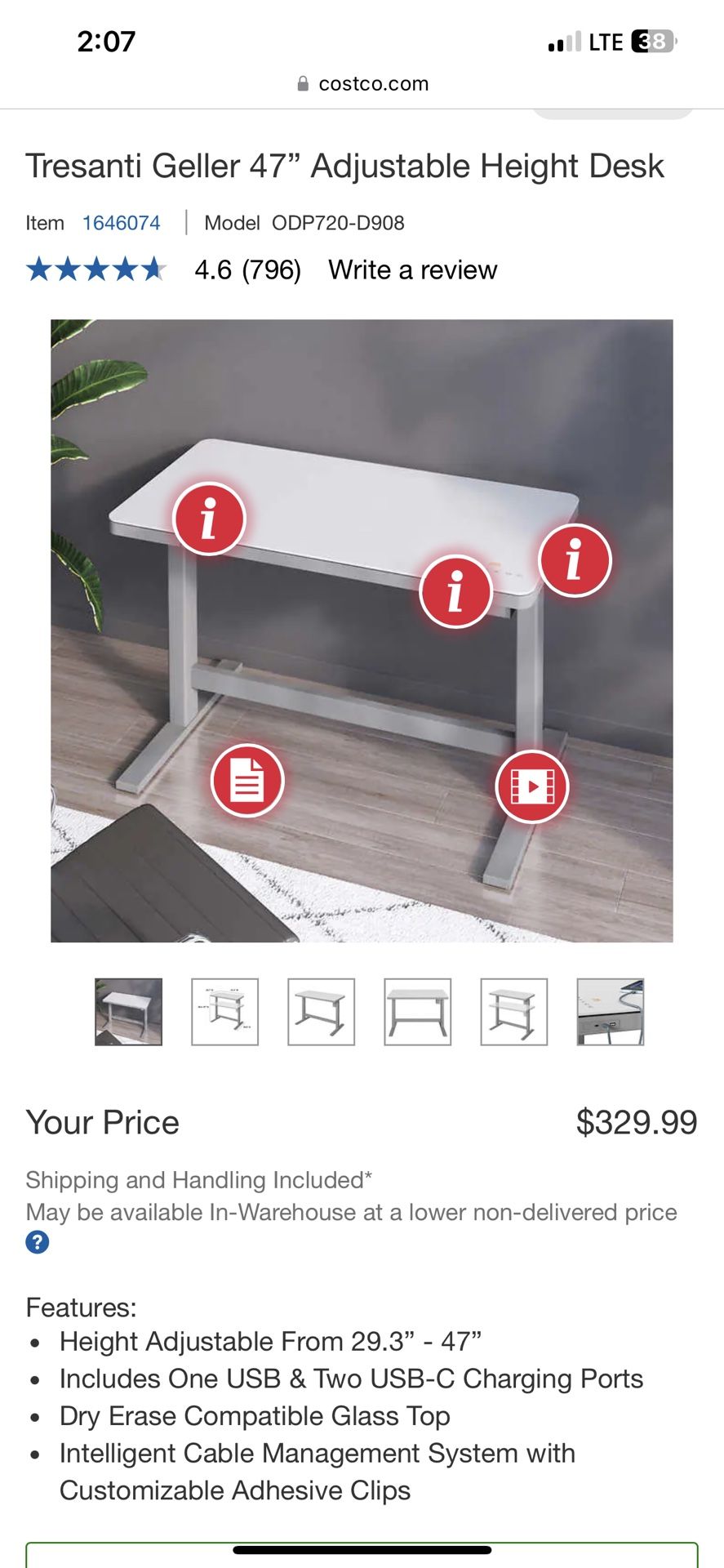 Tresanti Grey Adjustable Desk