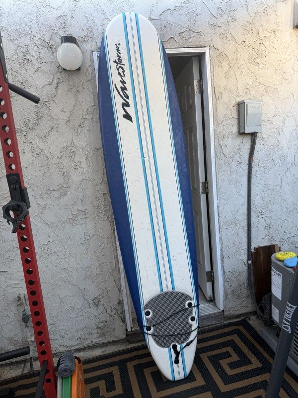 Wavestorm surfboard. Only used for a season. A few nicks and dents from moving. Nothing that cant be patched. The cut in picture has never seen water.