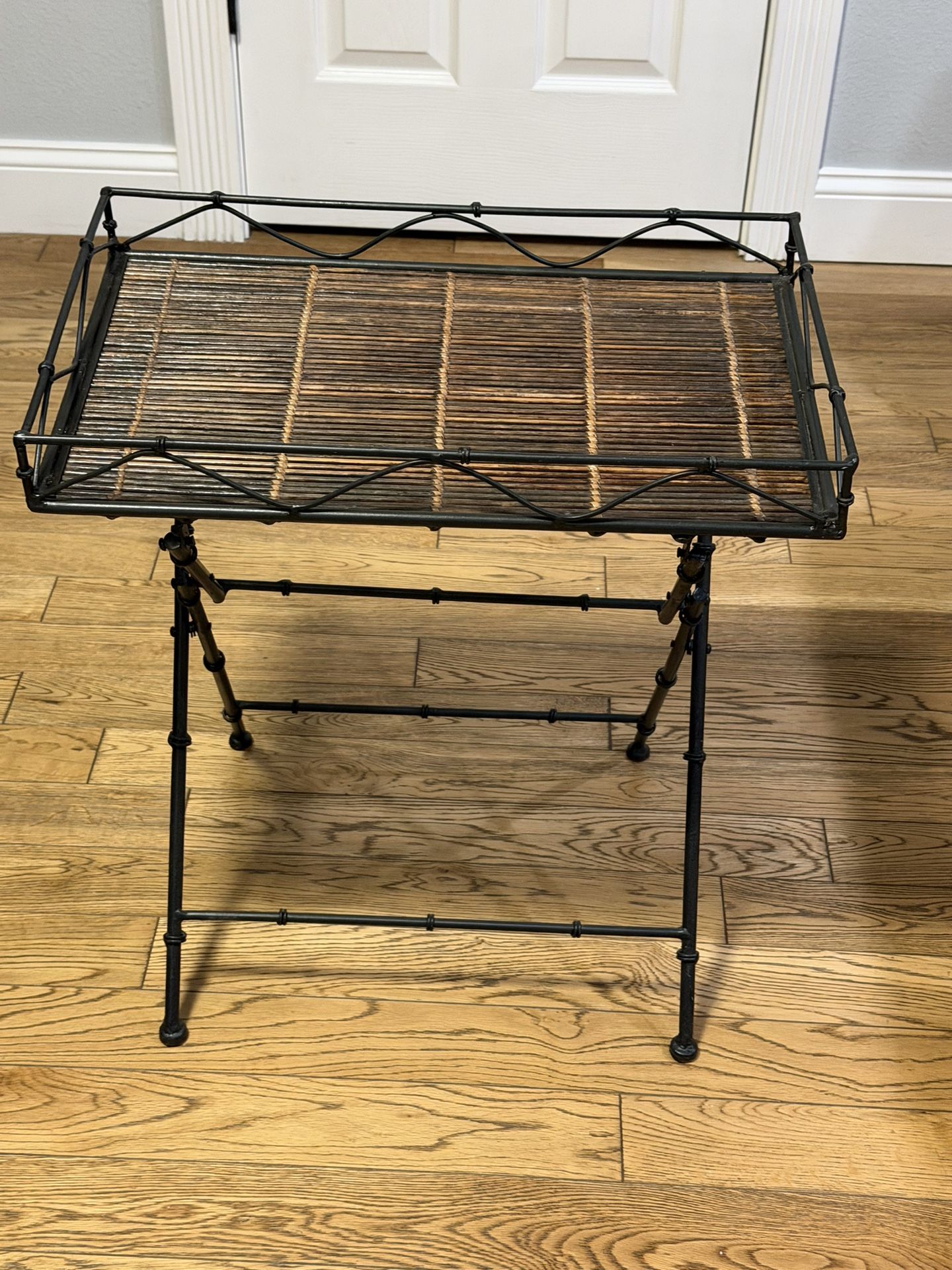 Metal Side Table with Tray in Faux Bamboo Folding