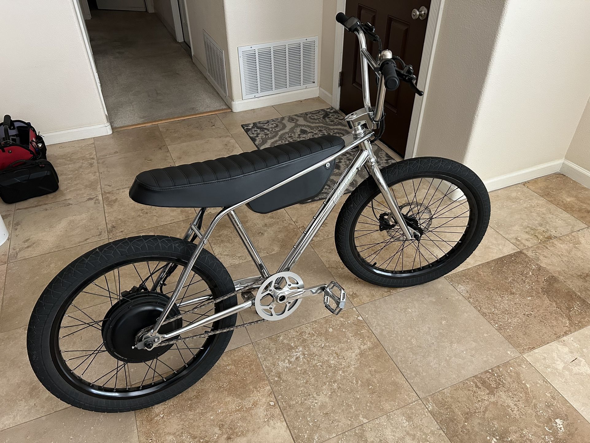 Very clean and rides great. Have gotten it to 30 miles an hour. Kept inside the house . No scratches. Paint looks great. Has a charger. Very low miles.