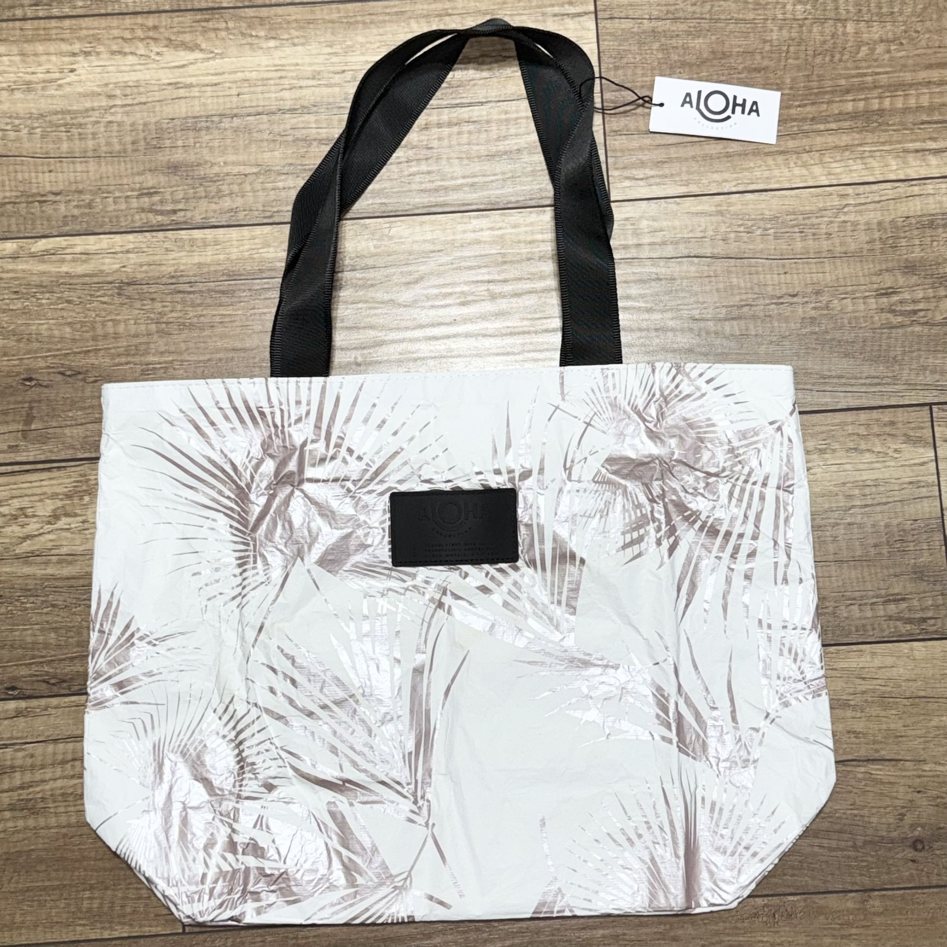 Brand new with tags! There is some light yellow spots on the bag from sitting in storgage but can be cleaned! 19 inches width and 14 inches length. The Aloha Collection Splash Proof Day Tripper is a stylish and durable tote bag designed for travel. With a floral pattern and tropical leaf print, this medium-sized bag features a zip closure and black handles. Made of lightweight polyester material, it is perfect for outdoor adventures and beach outings. The bag also includes inner pockets for organization and is water resistant, making it ideal for splashes and spills. Whether you're heading on a city excursion or a holiday getaway, this Aloha Collection bag is a must-have accessory for any nature-loving hipster or beach bum.
