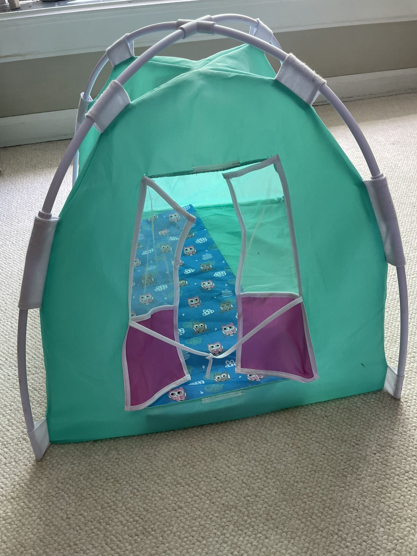 Tent (small tear on seam), and sleeping bag. Fits an American girl doll!