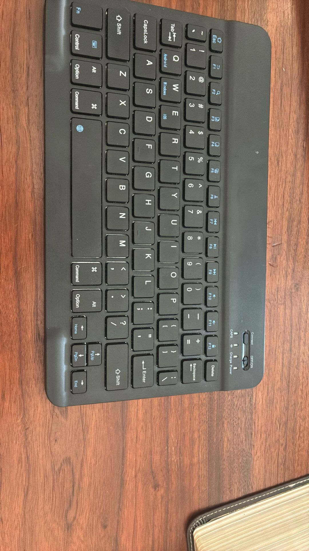 Connects via Bluetooth and works with Ipad tablets, should be compatible with all Tablets but unsure due to having a Apple Ipad. Works fine just do not use it. USB-C to charge