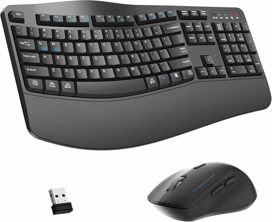 Wireless Keyboard and Mouse Combo, 2.4G Full Size Wave Keys Ergonomic Keyboard
