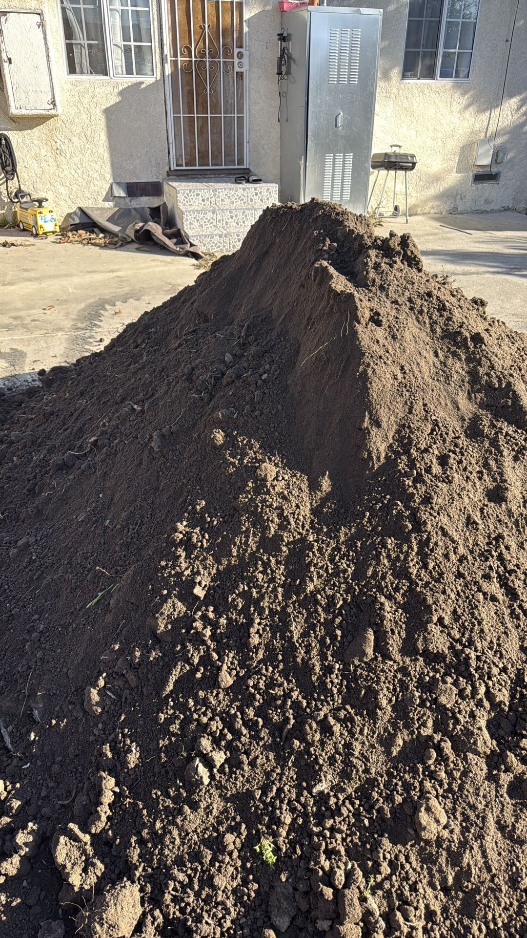 Free dirt feel free to take as much as you want before I take it to the dump Puedes llevarte todo lo que quieras antes de que lo tire al basurero.