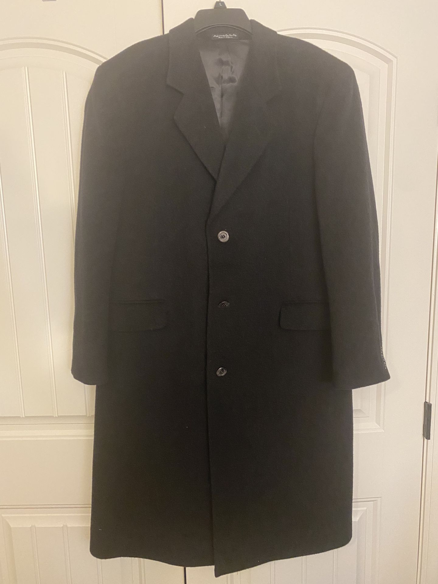 Silver Cloud Cashmere Wool Blend Men’s 42 R Black 3-Button Overcoat Trench Coat; 43” Long; Excellent Condition