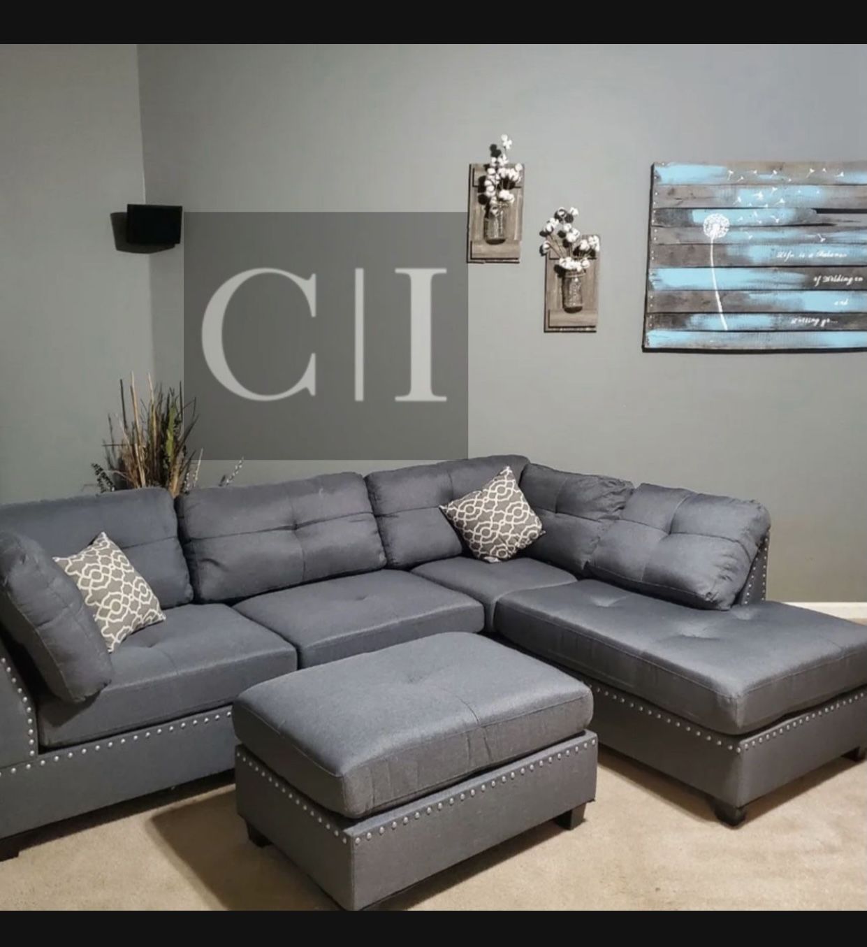 New Gray Sectional Sofa Couch Ottoman