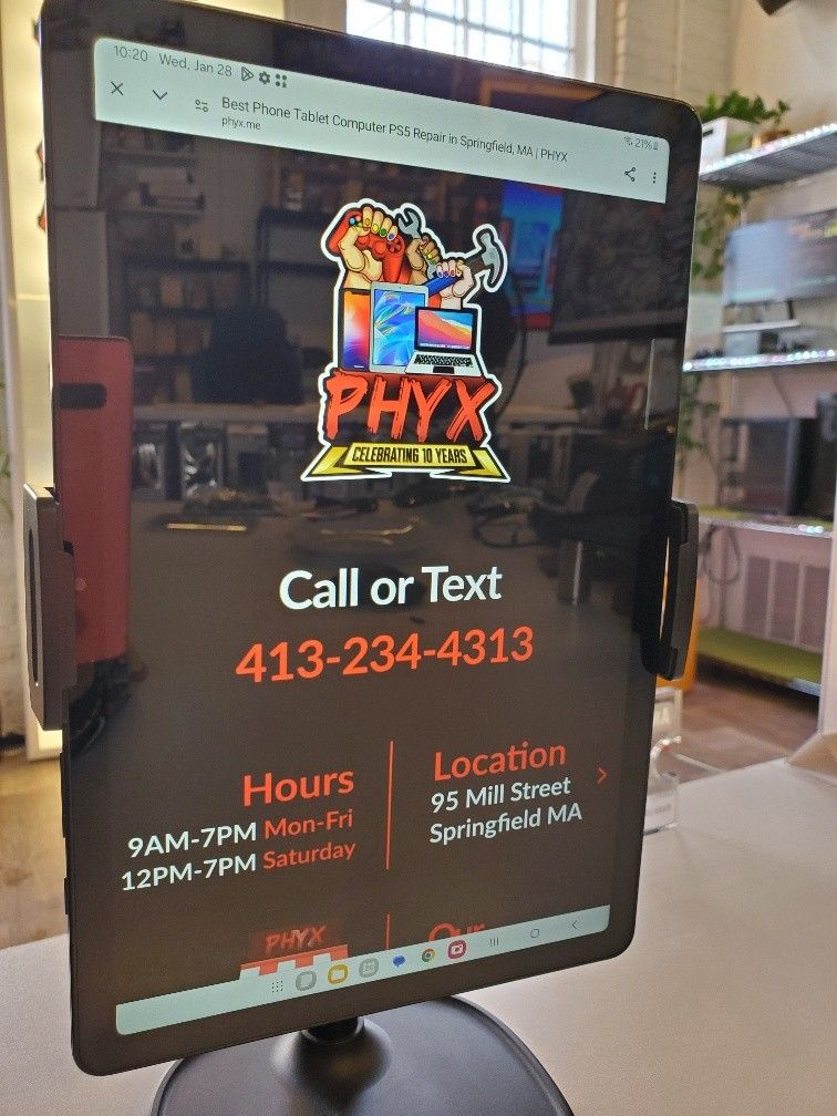 Great tablet for all modern use. Good for anyone. Comes with charger. Large smooth display, fast performance, and plenty of storage for apps, school, work, and streaming. Want money off? Ask us about your trade in. We take many things. LOCAL ONLY, no delivery. We can ship with prepayment. We accept cash, card & electronic payment apps. Find us on Facebook, search for us on Google, or see our website for more info and inventory list. Location is 95 Mill Street Springfield. Store hours and the times we respond online effective July 1 2025: M 9-7 T 9-7 W 9-7 R 9-7 F 9-7 Sat 12-7 Sun CLOSED Thanks for your valued business for 10 years.
