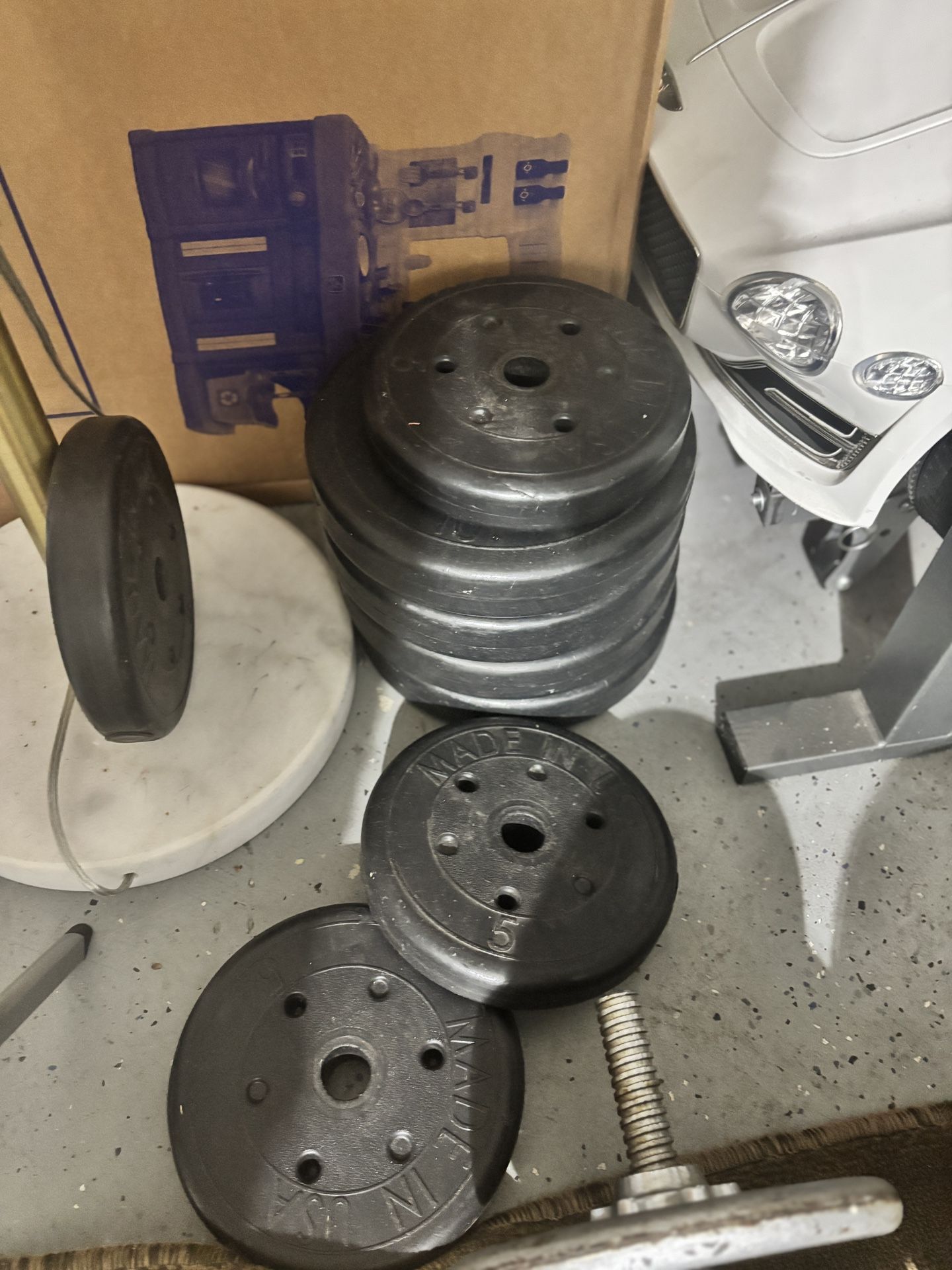 Exercise bench $60 and manual treadmill$70, dumbbell and 8weight plates $60
