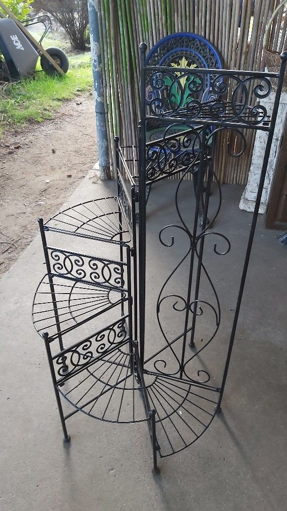 Ornate Vintage 6-Tier Spiral Wrought Iron Plant Stand