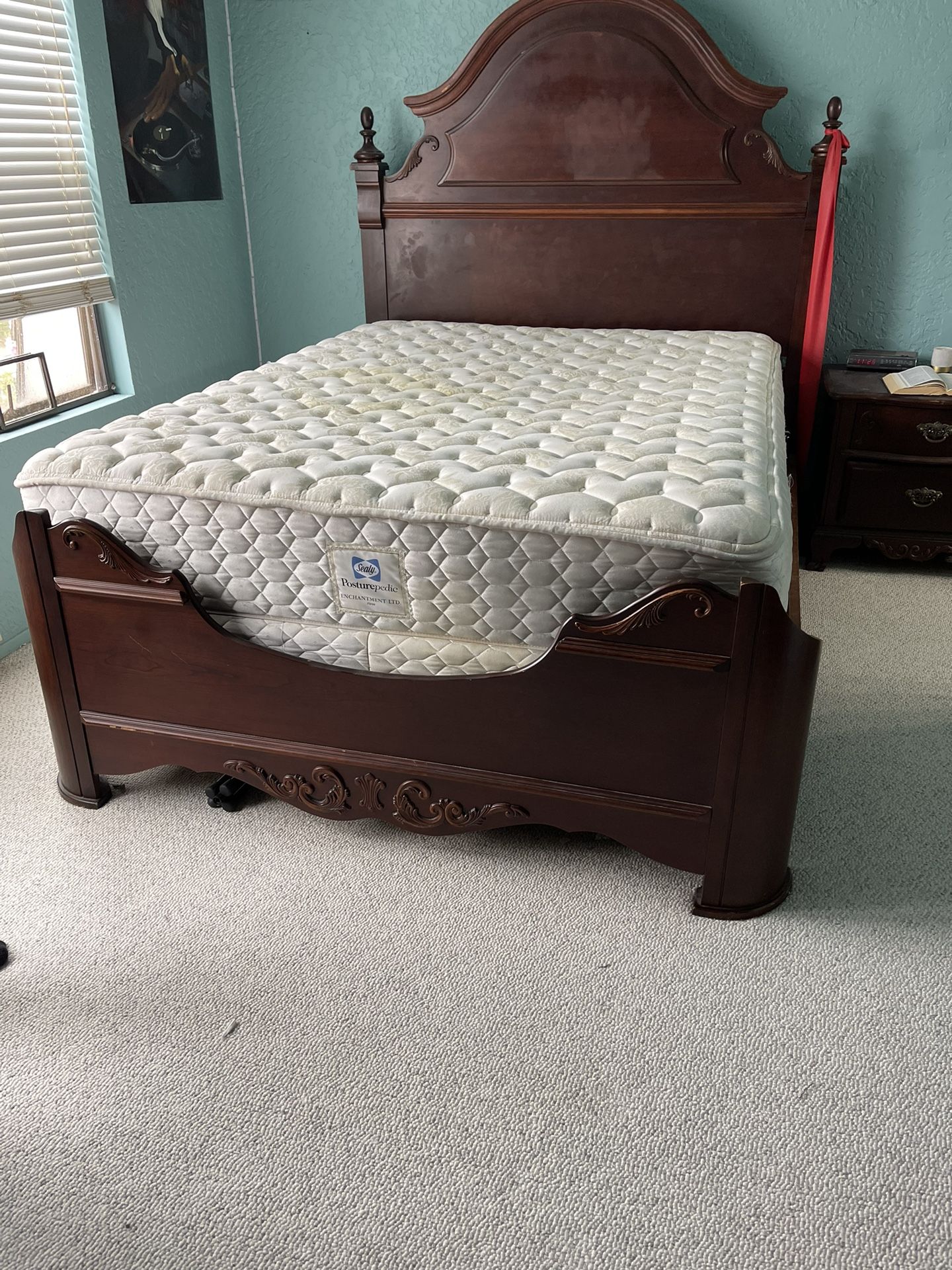 Wooden queen bed frame.