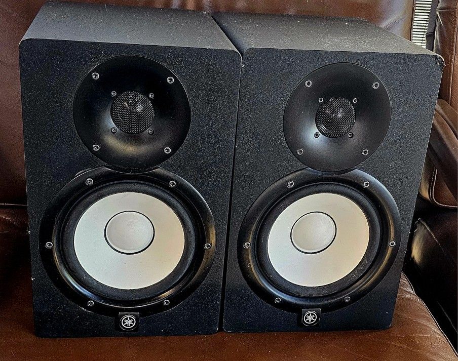 Yamaha HS7 6.5-inch Powered Studio Monitors. Each features a 6.5-inch cone woofer and a 1-inch dome tweeter.