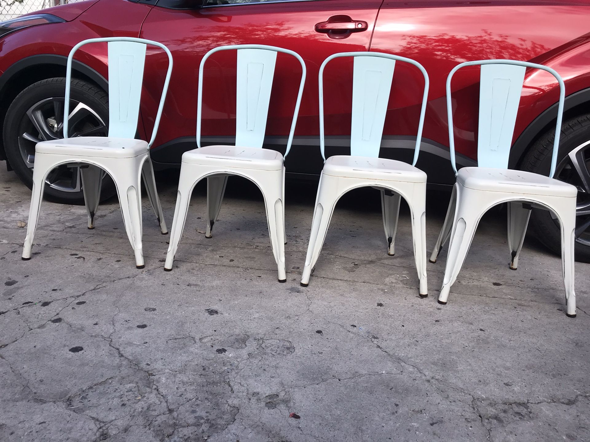 Nice set of 4 dining chairs 18 inches tall very sturdy white rustic color and turquoise blue back