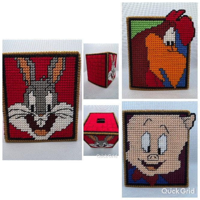 These handmade tissue box covers are made with plastic grid canvas and yarn. They will last for years if they are only handled to change the tissue box inside. I follow pattern books and use the colors that it states. Let me know if you would like a different color and I will make it, with a 2 week turnaround time. Made in a non smoking home and immediately placed in a ziploc bag for storage. Pickup only in East Fort Worth near Kennedale and Forest Hill #Looney #tunes #cartoon #home #decoration #deco #bugsbunny #Tazmanian #speedygonzales
