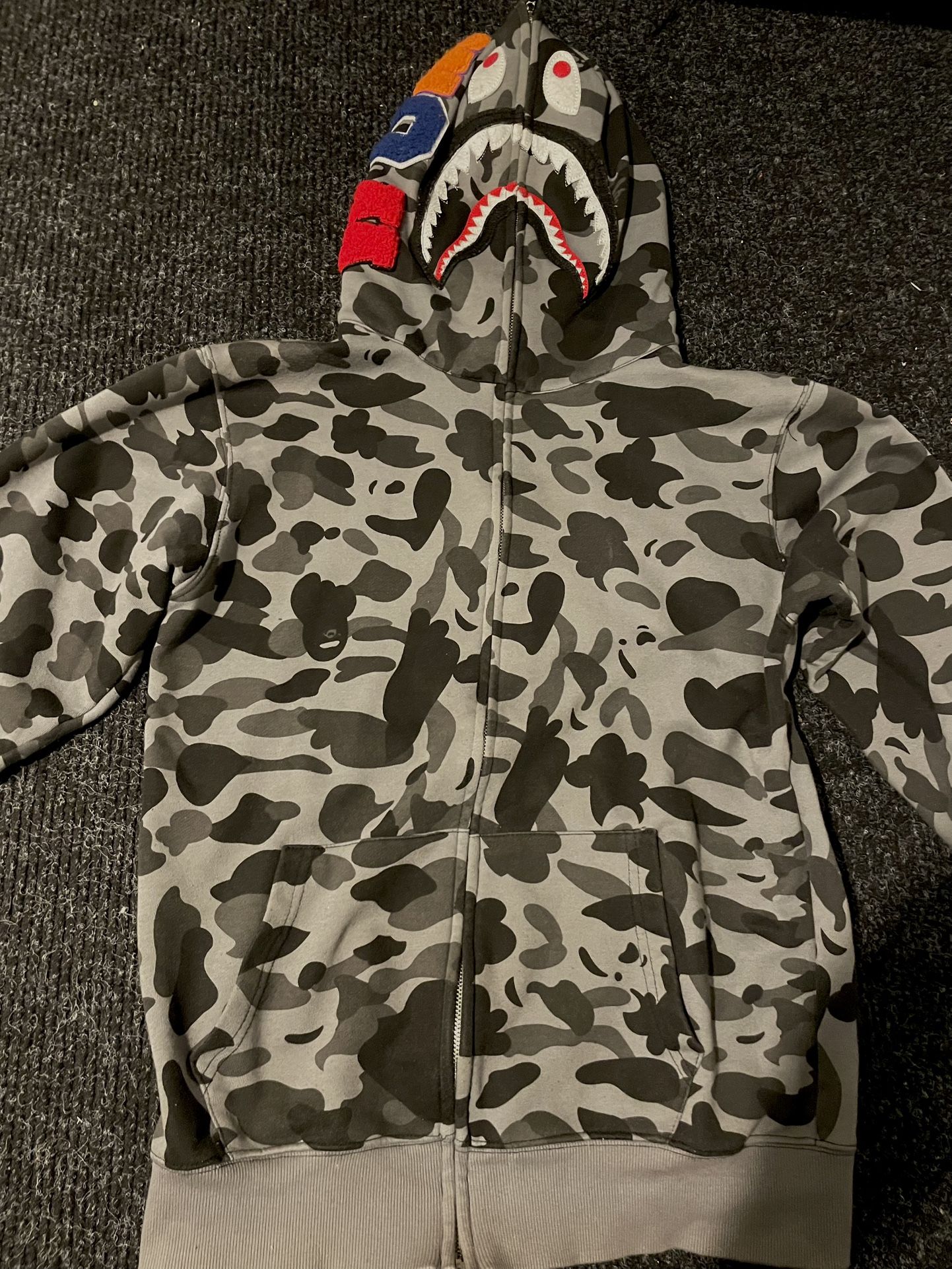 Bape hoodie without tag or bag it’s slightly used only wore about 2-3 times just really trying get it off my hands size M fits like a small tho all offers excepted.