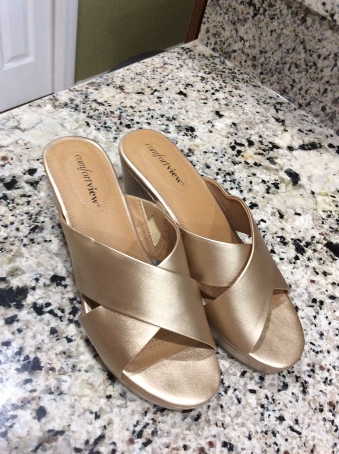 Comfort View Gold sandal heels, bought from Jessica London, size 8, worn once to church. $5